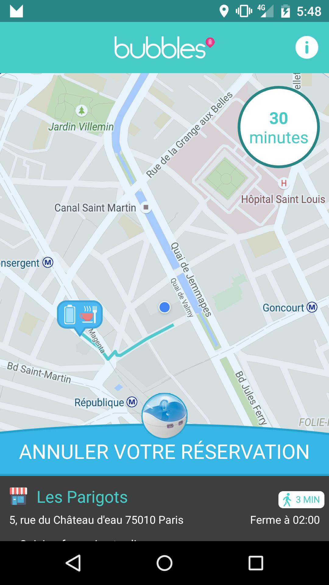 Les bulles sont partout à Paris, les bars les plus tendance, les restaurants, les concepts, les hôtels en ville! Pas besoin d'avoir votre câble avec vous: les bulles sont équipées des câbles principaux. Dans une seconde, l'application vous aide à choisir le meilleur endroit pour charger. Vous pouvez facilement voir quelles bulles sont disponibles et quel magasin est ouvert, même en retard.